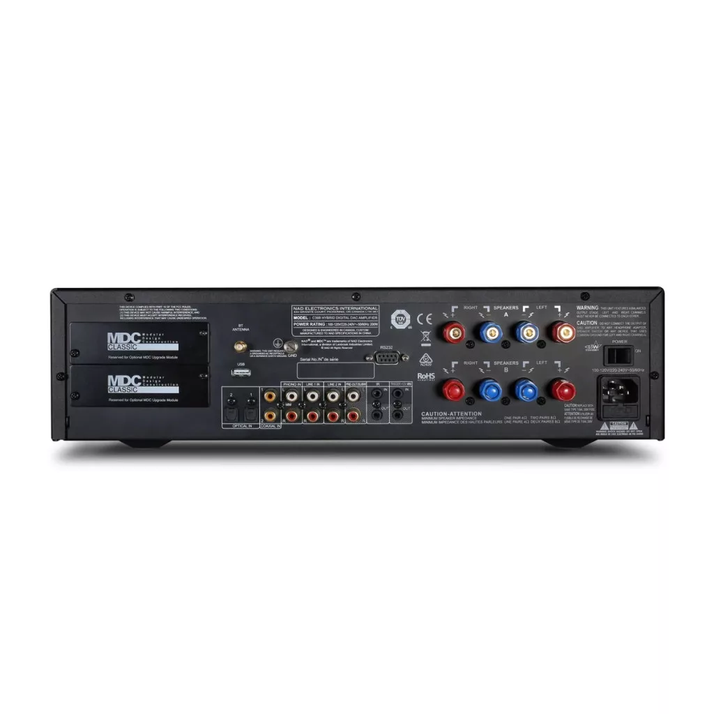 A Modular Design Construction (MDC) lehetővé teszi a NAD erősítő testreszabását további lehetőségekkel és funkciókkal. A két rendelkezésre álló MDC bővítőhely különféle frissítési modulok befogadására alkalmas, beleértve a 4K videóképes HDMI-kapcsolást, további digitális bemeneteket, további analóg és Phono bemeneteket, valamint az egyik legfejlettebb Hi-Res Audio multiroom vezeték nélküli rendszert, a BluOS zenekezelést. A BluOS csatlakozik a hálózathoz és telefonról, tabletről vagy számítógépről vagy kedvenc streaming zenei szölgáltatódon keresztül lejátsza kedvenc zenéidet.