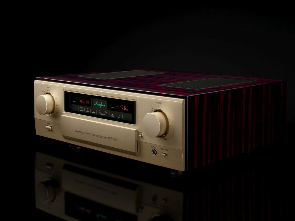 Accuphase C-3900S sztereó előrősítő - A világ legjobb előerősítőjeként számon tartott C-3900S-es készülék rendkívül kis zaj szinttel és nagy dinamika aránnyal. Azt speciális Aava hangerő szabályozó áramkört építették az előerősítő részbe amit a top kategóriában is igen elismertnek és páratlan minőségű technológiának jellemeznek. Ez az analóg hangerő szabályozás forradalmian magas hangminőségre képes az előerősítő fokozatban. A jobb és bal csatorna teljesen független az áthallás alacsony értékn tartása végett.
