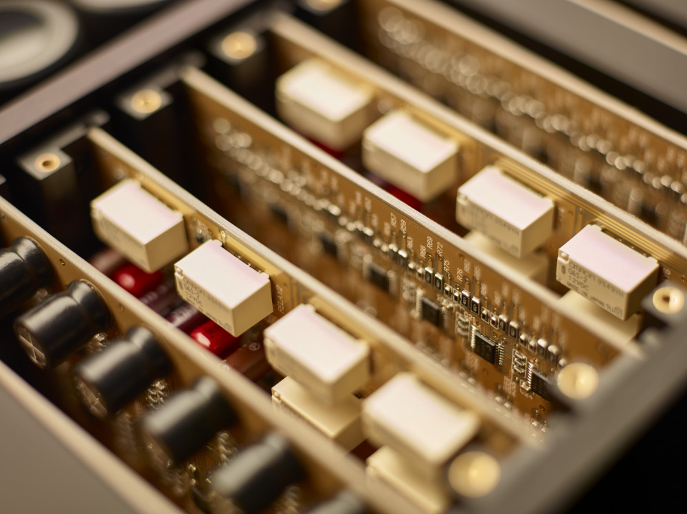 A két újonnan kifejlesztett, 10 000 μF-os, nagy kapacitású, új fejlesztésű, jó minőségű szűrőkondenzátor minden csatornába beépítve, a terhelésingadozások akadálytalan kezeléséhez, bőséges teljesítményt szolgáltat. Az Accuphase C-3900S Referencia sztereó előerősítő tele van elektronikával. Elég egy pillantást vetni ahhoz, hogy láthassuk, a vállalat mérnökei a legalaposabban tervezték belső struktúráját. Az Accuphase kezdettől fogva hűséges a félvezetőhöz, bennük látja a lehető legalacsonyabb torzítás és zaj felé vezető utat. Nyomtatott áramköri lapok üvegszövet fluorkarbon gyantával kezeltek, a C-3900S típus külön elektronikákat tartalmaz a bal és a jobb oldalra. Az új fejlesztésű hangerőszabályzó mechanizmus a kézi/motoros gomb szöghelyzetének érzékelését látja el. Az Accuphase házon belül fejlesztette ki a térfogatérzékelőt, egy hatalmas, extrudált és a lehető legnagyobb precizitással kidolgozott alumínium blokkot használva. A gomb teljesen szilárd, folyamatos és egyenletes működési érzetet biztosít, és rendkívül pontos pozícióérzékelést tesz lehetővé. A távirányító használatakor egy motor, egy gyárilag beállított sebességfokozaton hajtja meg a hangerőszabályzót.